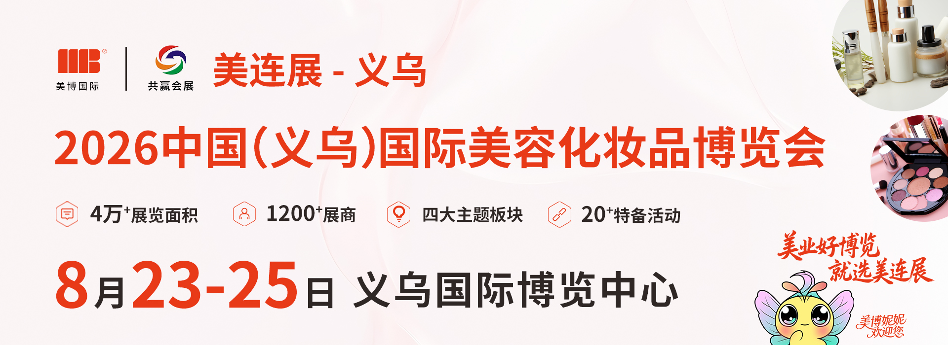 中国义乌国际美业博览会旨为国内外美容、美发、日化美妆原料、包装及设备生产商搭建一个全产业链一站式的交流平台。凭借义乌市场的影响力,通过自身品牌知名度和庞大的全球客户网络在境内外进行全方位市场推广,邀请高质量的专业买家和观众亲临现场参观。本届博览会涵盖发制品展、包装展、美容展、日化美妆原料展等四大主题展,全方位展示各个主题板块行业方面的新技术、新产品。并关注新时代美业消费新需求,不断创新、升级玩法体验,以提升企业感受度。创新突破打造美业新产品、新潮流、新场景,领跑美业消费新赛道。联动线上线下商业载体和电商平台促进美业消费,共同打造一场精彩纷呈的美业盛宴。