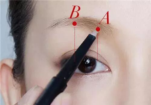2.用眉笔头从A点到B点进行自然描画,然后延伸至眉尾。