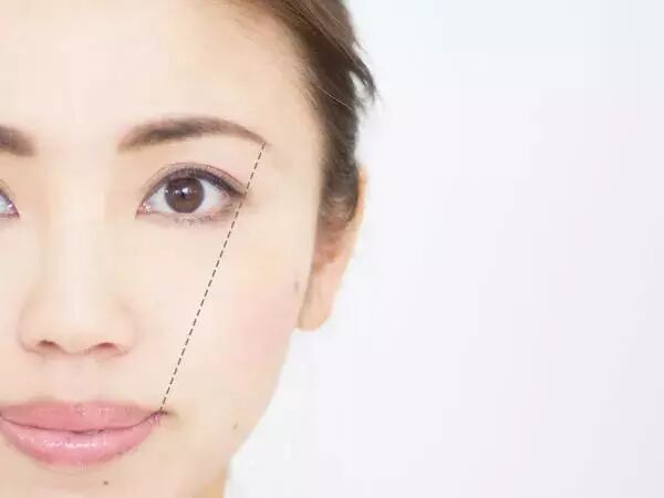 无论你画哪种眉型,眉长都不宜过长,眉长过长容易显老,最简单的眉尾定位方法就是,嘴角和眼尾连接线的延长线与眉毛的交叉点,就是每个人眉尾的最佳位置。