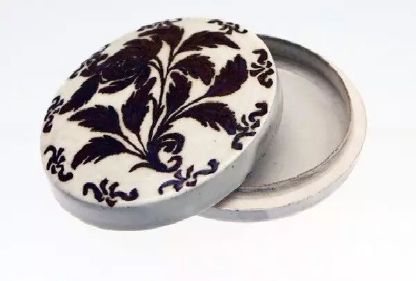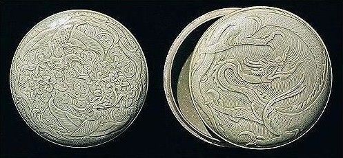 粉盒,顾名思义,是种盛放“粉”的器具。古代的粉盒也称为油盒、黛盒,是古代妇女存放脂粉和香粉的化妆盒。粉盒由盖和底两部分组成,子母口相互扣严,盒身直腹,外腹模印菊瓣纹或瓜棱形、八角形等,底平内凹;盒盖浅弧顶,盖面模印各式花卉、卷草纹等精美图案。