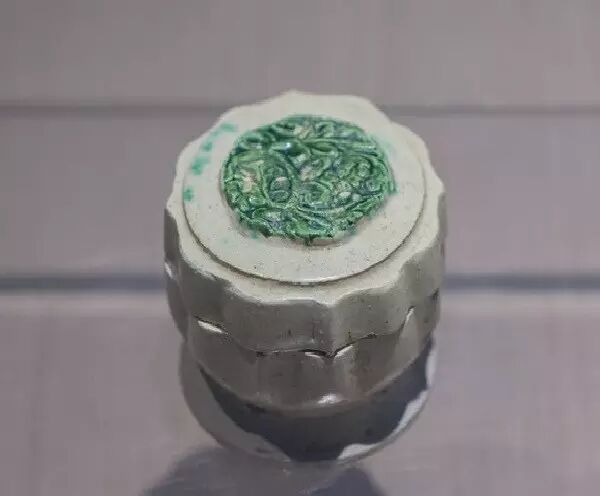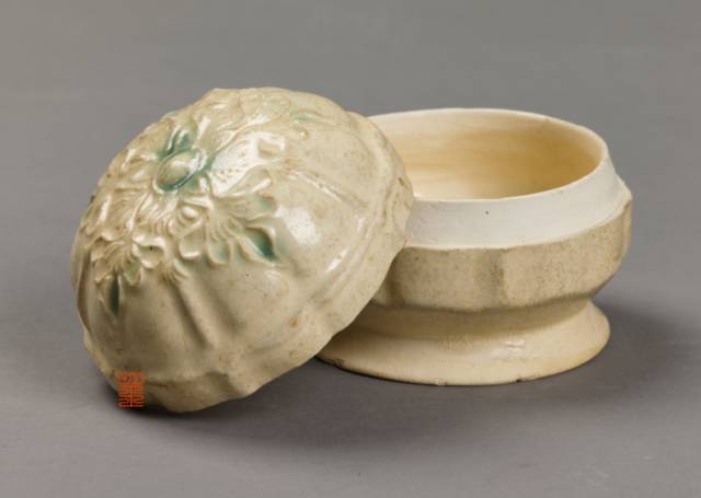 唐代越窑、长沙窑、邢窑所生产的圆形粉盒较为常见,通体施青釉、黄釉或白釉,装饰一般较为简朴,素面无纹饰,其盒身与盒盖以子母口结构套合,也是早期瓷粉盒最为普遍的形制。